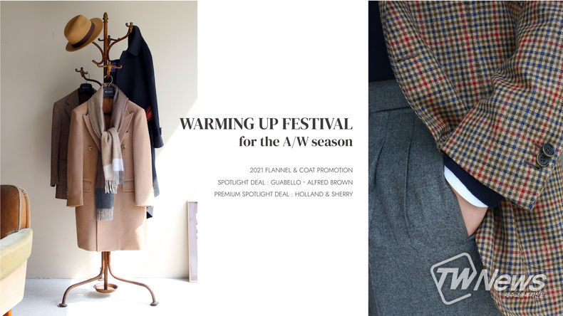 소비자들은 이번 2021 A/W 루쏘소 워밍업 페스티벌을 통해서 최대 43% 할인된 플란넬 수트와 최대 31% 할인된 가격의 울캐시미어 코트를 구매할 수 있다.