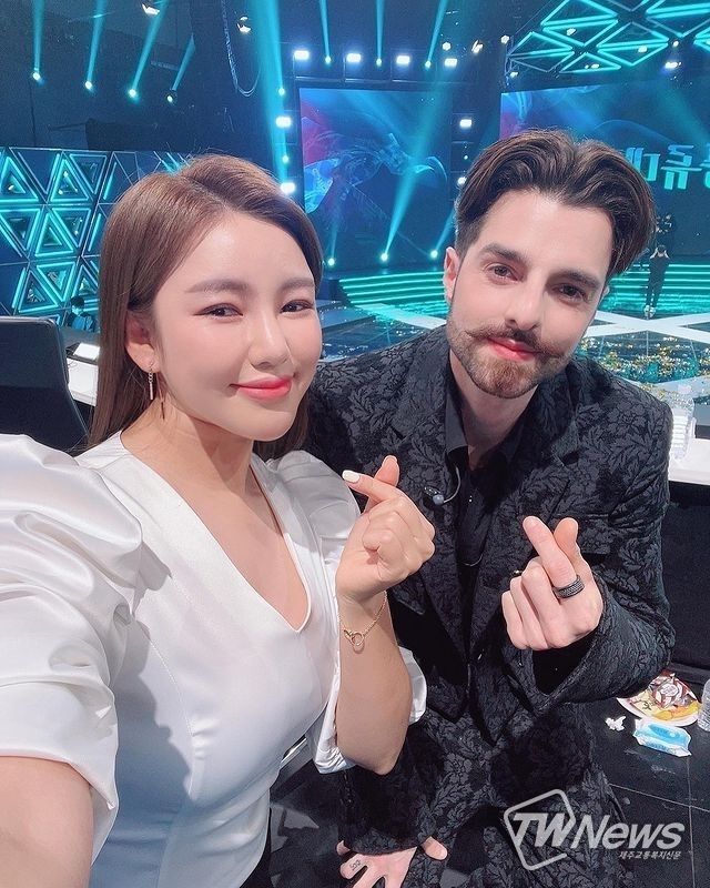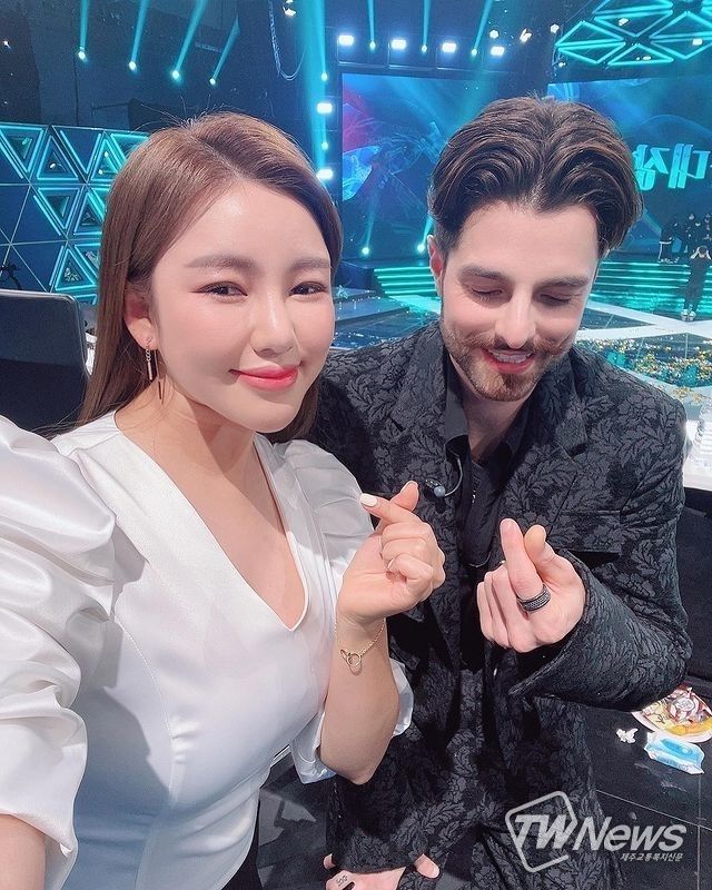 또한 DJ 알록과 함께 찍은 두 장의 사진도 공개했다. 사진 속 두 사람은 손가락으로 하트 모양을 만들어 보이며 밝은 미소를 짓고 있다. 두 사람의 모습은 훈훈하고 다정한 분위기를 자아낸다.