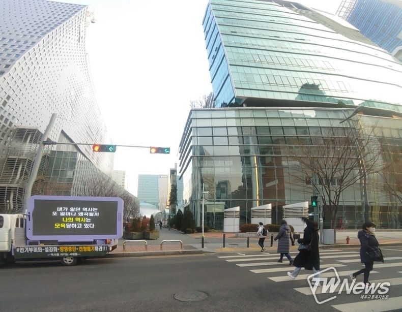 [제주교통복지신문 김현 기자] 역사 왜곡 논란에 휘말린 드라마 ‘설강화’의 방영 중지를 촉구하는 트럭 시위가 시작됐다.