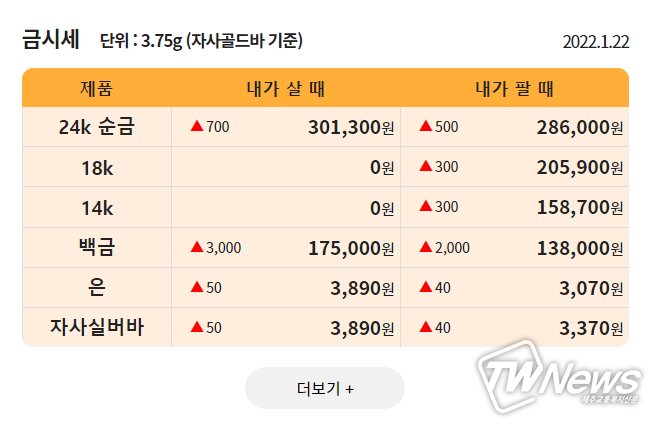 은(Silver-3.75g)은 3,890원에 구입할 수 있으며, 팔때는 3,070원에 거래 가능하다.