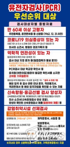 단, 60세 이상 고령자, 검사가 필요하다는 의사 소견서를 받은 사람, 역학적 관련자, 감염취약시설 선제검사 등 우선순위 대상자에 한해 유전자증폭(PCR) 검사는 6개 보건소에서 현행대로 유지한다.