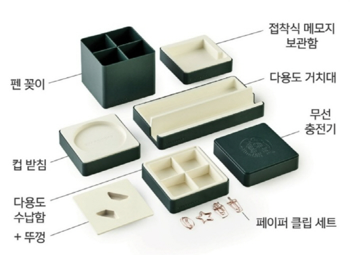 대체 상품으로 선정된 데스크 모듈은 컵 받침, 무선충전기, 접착식 메모지 보관함, 다용도 수납함, 다용도 거치대, 펜꽂이 등 6개 물품으로 구성됐다.