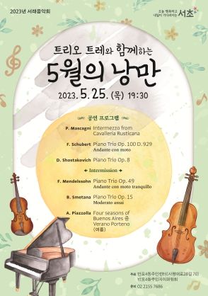 [제주교통복지신문 김강석 기자] 서울 서초구 반포4동 주민자치위원회에서는 2023년 자치회관 특화사업으로 반포4동주민센터 4층 서래아트홀에서 오는 5. 25. 오후 7시30분 서래음악회를 개최한다.