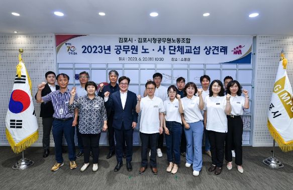 [제주교통복지신문 김강석 기자] 김포시와 김포시청공무원노동조합은 6월 20일 김포시청 소통실에서 노사 양측 대표 교섭위원인 김병수 김포시장과 유세연 노조위원장을 비롯해 노사 양측 교섭위원 14명이 참석한 가운데 ‘2023년 김포시 공무원 단체교섭 노사 상견례’를 실시했다.