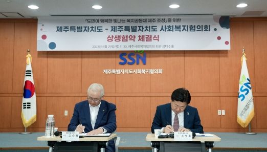 제주도는 29일 오전 11시 30분 제주사회복지협의회 회의실에서 ㈔제주도 사회복지협의회와 도민 복지증진을 위한 상생협약을 체결했다.