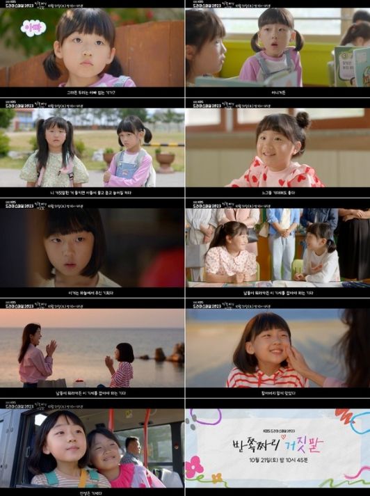‘반쪽짜리 거짓말’의 예고 영상은 열 살 소녀 두리와 민아가 거짓말을 숨기기 위한 비밀스러운 작전이 담긴 사랑스러운 연출과 독특한 스토리를 예고, 본 방송을 더욱 기다려지게 만든다.