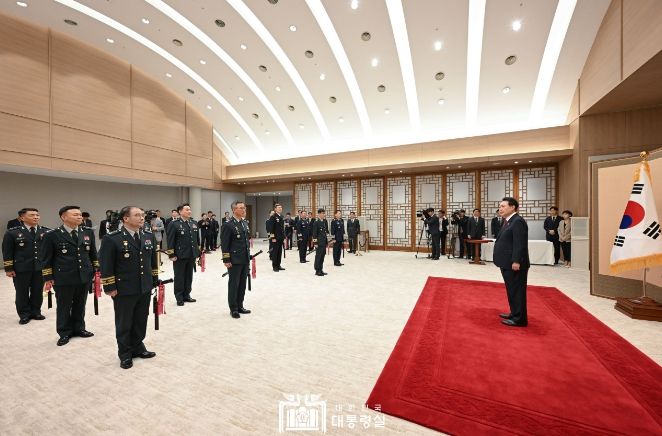 [제주교통복지신문 김강석 기자] 윤석열 대통령은 11월 6일 오후 용산 대통령실에서 곽종근 신임 특수전사령관을 비롯한 중장 진급자 12명으로부터 진급 및 보직신고를 받고 삼정검에 수치를 수여했다. 이번 군 수치 수여식은 윤석열 정부들어 다섯 번째 수치 수여식이다.