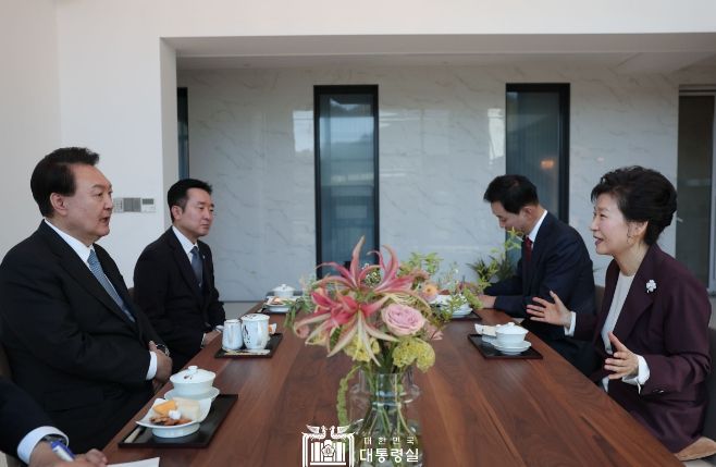 대화를 마무리하며 박 前 대통령이 “해외 순방 일정이 많아 피곤이 쌓일 수 있는데 건강관리 잘하시라”고 말하자, 윤 대통령은 “지난 번에 뵀을 때보다 얼굴이 좋아지신 것 같아 다행이다, 건강 잘 챙기시기 바란다”고 박 前 대통령의 건강을 기원했다.