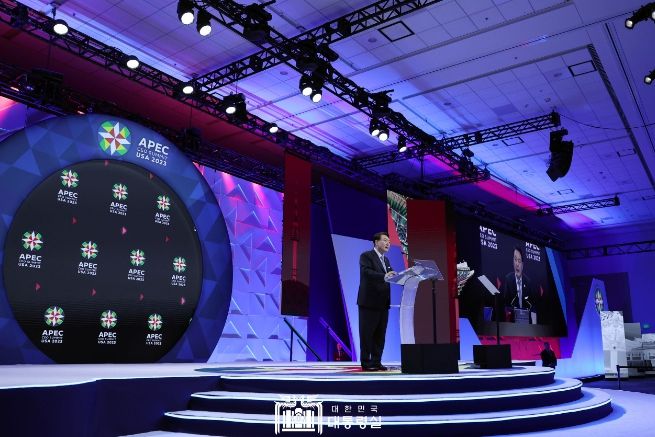 [제주교통복지신문 김강석 기자] APEC 정상회의를 계기로 미국 샌프란시스코를 방문 중인 윤석열 대통령은 오늘(현지시각 11. 15, 수) 오후 APEC CEO Summit 행사 기조연설을 통해 ❶교역, 투자와 공급망, ❷디지털, ❸미래세대 등 세 분야에서 APEC 역내 상호 연결성 제고를 위한 협력 방향을 제시하고, 글로벌 중추국가로서 한국의 APEC 기여 의지를 표명했다.