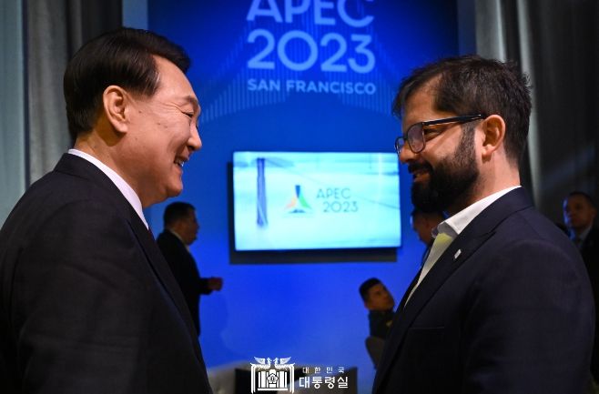 [제주교통복지신문 김강석 기자] APEC 정상회의 참석을 위해 미국 샌프란시스코를 방문 중인 윤석열 대통령은 오늘(현지시간 11. 16, 목) 오후 가브리엘 보리치(Gabriel Boric) 칠레 대통령과 취임 이후 처음으로 정상회담을 가졌다.