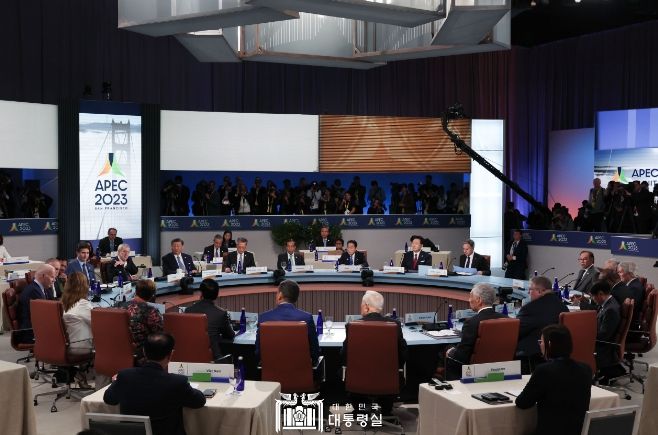 [제주교통복지신문 김강석 기자] 미국 샌프란시스코에서 개최 중인 제30차 APEC 정상회의에 참석하고 있는 윤석열 대통령은 오늘(현지시간 11. 17, 금) 11:00-12:30간 개최된 두 번째 세션인 리트리트(주제 : 상호연계, 포용적이고 회복력 있는 경제 만들기)에 참석했다. 대통령은 세계 경제의 변곡점에서 APEC에 주어진 역할을 강조하고, 푸트라자야 비전 2040 실현을 위해 긴밀히 연대하며 포용적이고 회복력 있는 경제를 함께 만들어 나가자고 촉구했다.