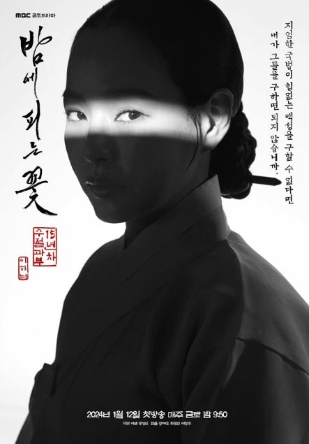 MBC 새 금토드라마 ‘밤에 피는 꽃’은 2024년 1월 12일 금요일 밤 9시 50분 첫 방송 된다.