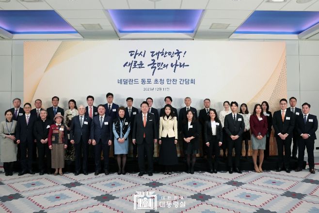 [제주교통복지신문 김강석 기자] 네덜란드를 국빈 방문 중인 윤석열 대통령은 김건희 여사와 함께 오늘(현지시간 12. 11, 월) 저녁 현지 동포 100여 명을 초청하여 만찬을 겸한 간담회를 가졌다. 이번 간담회는 네덜란드 전역에서 활발히 활동 중인 100여 명의 동포들이 참석한 가운데 진행됐다.
