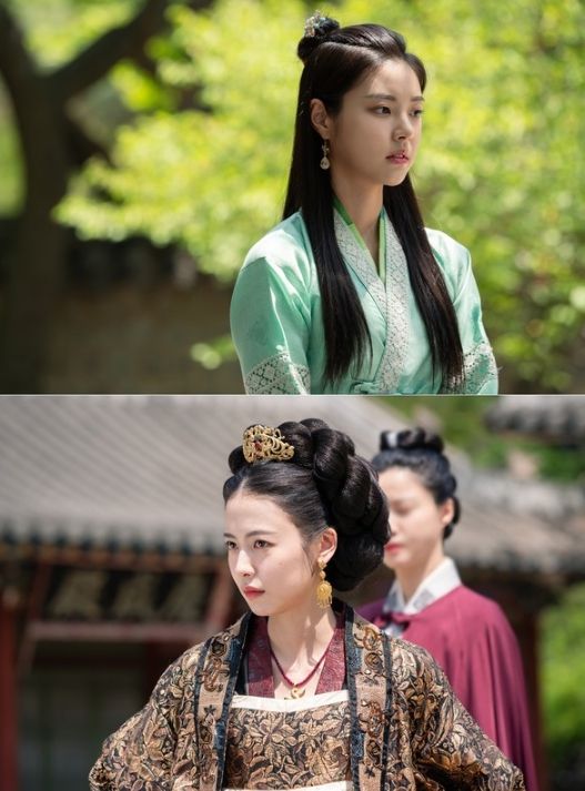 특히 왕위를 노린 권력 다툼의 주인공이 될 황희(사조 융 역)와 궁중 암투의 중심에 서는 지우(금화 역)까지 촘촘한 인물관계도가 그려진 가운데, 오늘 18일(월) 묘한 인연으로 얽히고설킬 홍예지와 지우의 스틸 컷이 공개돼 눈길을 끈다.