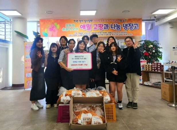 [제주교통복지신문 박희찬 기자] 제주도교육청 애월고등학교 4-H 동아리는 28일 애월읍사무소를 방문해 애월 관내 어르신 및 불우 이웃에게 나눌 김치 25세트를 전달했다.