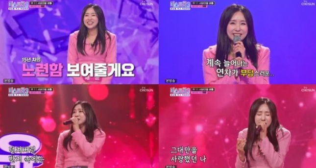 '15년차 베테랑 트롯 가수'로 소개된 채윤은 "계속 늘어가는 연차가 부담스러운, 외길 트로트 인생"이라며 자신을 소개했다.