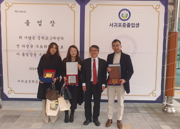 강철남 위원장은“교육가족이 함께하여 제78회 졸업식이 더 빛난 듯하다. 청룡의 해를 맞아 교직원·학부모·학생이 함께 만들어가는 서귀포중학교가 공교육의 모델로서 자리매김하기를 기대한다. 아울러 졸업생의 무궁한 발전을 기원한다”며 응원의 메시지를 전했다.