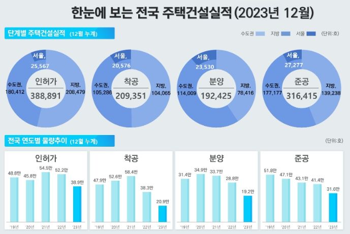 인허가는 12월 94,420호로 전월(20,553호) 대비 359.4% 증가했고,12월 누계(1~12월) 기준 388,891호로 집계됐다.