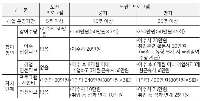 아울러, 프로그램 이수 후 6개월 이내 취업하고 3개월 근속하는 청년에게는 50만원의 취업인센티브가 추가로 지원되며, 도전+ 이수자에 대한 국민취업지원제도 연계를 강화하여 끊김 없는 체계적인 고용서비스를 제공할 예정이다.