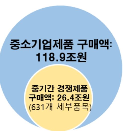 중기간 경쟁제도는 ’22년 기준 26.4조원 규모로, ’18년 대비 7.2조원 증가(37.5%↑)하여 중소기업의 경영 안정에 이바지하고 있다.