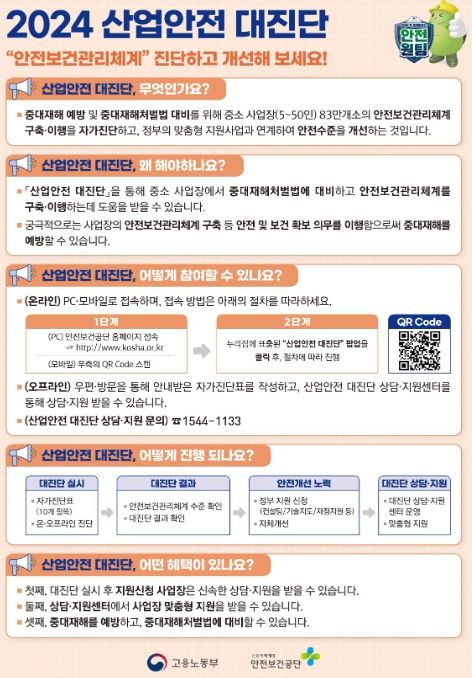 이정식 장관은 “정부가 지금 해야 하는 일은 현장의 혼란을 최소화하고, 영세·중소기업의 어려움을 덜어 드릴 수 있도록 가용한 모든 자원과 역량을 집중하는 것”이라고 강조하며, “「산업안전대진단」을 통해 지원을 원하는 사업장에는 즉시 대응하고, 안전보건공단 30개 일선기관의 상담 지원센터를 중심으로 찾아가는 현장 지도·안내에도 만전을 기할 것”을 주문하며, “소중한 생명과 안전을 지킬 수 있다는 사명과 책임을 가지고, 「산업안전대진단」의 성공적인 완수와 산재예방사업의 과감한 혁신을 통한 성과 창출을 위해 최선의 노력을 다해줄 것”을 당부했다.