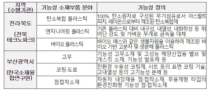 「기능성소재부품기업 경쟁력강화사업」은 비수도권 지역혁신기관의 역량을 활용하여 소재부품 기업에 맞춤형 지원을 통해 소재·부품의 국산화와 내수시장 확대를 견인하는 사업이다.