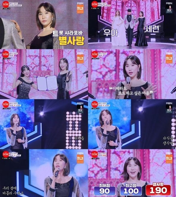 이날 방송은 ‘불타는 시상식’ 특집으로 인생곡 무대를 펼쳤고, 별사랑은 진미령의 ‘내 엄마’를 선곡했다.