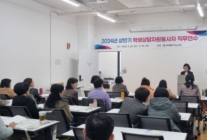 [제주교통복지신문 박희찬 기자] 제주특별자치도교육청은 학생상담자원봉사자 54명을 대상으로 2월 20일부터 22일까지 3일간 도교육청 제2청사 제6회의실에서 상담 전문성 역량 강화를 위한“2024년 상반기 학생상담자원봉사자 직무연수”를 운영하고 있다.