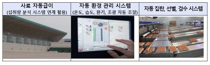 이번에 방문한 축산농장(가농바이오)은 총 8개 사육동에서 어미닭 등 160만마리를 기르며 하루평균 90만개의 계란을 생산하는 국내 최대규모의 산란계 농장이다. 특히, 해당 농장은 축산데이터와 연계한 정보통신기술(ICT) 장비를 활용해 사육환경과 사료 제공량을 원격 정밀제어해 연 평균 15억원의 사료비를 감축하고 생산된 계란의 이송·검사·분류·세척 과정을 자동화해 관련 노동력의 75%를 절감하고 있다.