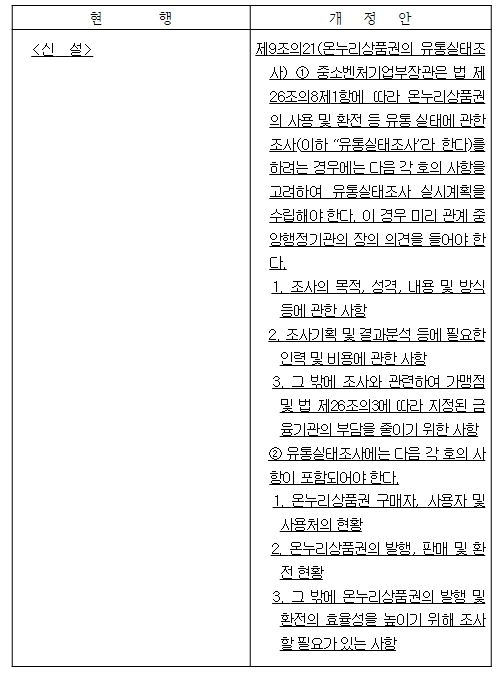 ① 실태조사의 내용 : 온누리상품권 구매자, 사용처 현황, 온누리상품권 발행, 판매, 환전 현황(안 제9조의21 제1항)