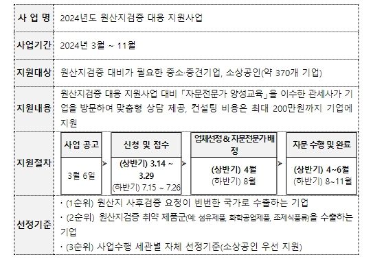 특히, 올해는 민생과 직결되는 소상공인의 원산지검증 대응 역량을 지원하기 위해 사업 대상 선정 기준을 완화했다.