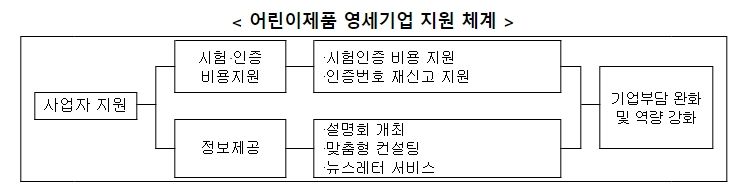 ‘18년 시작된 '어린이제품 영세기업 지원사업'은 ‘23년부터 사업이 확대되어 작년에는 557개 기업에서 시험‧인증 비용 지원을 받았으며, 올해에도 상‧하반기 두 차례(3월, 8월) 신청‧접수 예정이다. 또한, 어린이제품 관련 법률과 안전기준 개정 현황 등의 정보제공을 위한 설명회와 어린이제품 인증문의 등 사업자의 궁금한 사항을 즉시 해결할 수 있는 맞춤형 컨설팅 및 최신 제품안전동향을 알 수 있는 뉴스레터 서비스를 제공할 계획이다.