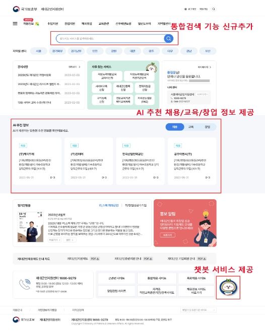 [제주교통복지신문 송한신 기자] 중·장기복무 제대군인들에게 취·창업 관련 각종 정보와 취업추천, 교육훈련 등을 체계적으로 지원하기 위한 제대군인 전직지원시스템이 인공지능(AI) 기반 시스템으로 고도화되어 15일부터 운영된다.
