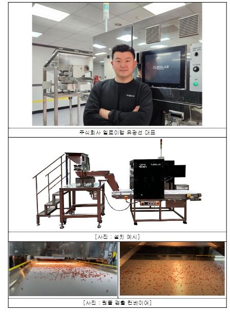 ‘엘로이랩’은 농식품 불순물 제거 장비를 개발하는 새싹기업(스타트업)으로, 인공지능(AI) 초분광 기술을 이용하여 농식품의 이물질, 변질 및 변형 등 비정형의 불순물을 검출하고 제거하는 이물검사 자동화 장비를 개발했다.