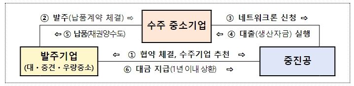 [제주교통복지신문 송한신 기자] 중소벤처기업부는 중소기업이 납품 계약 후에 겪는 자금조달 애로를 해결하기 위해 ‘중소기업 동반성장 네트워크론’을 올해 신규로 추진하고, 2일부터 접수를 시작한다고 밝혔다.