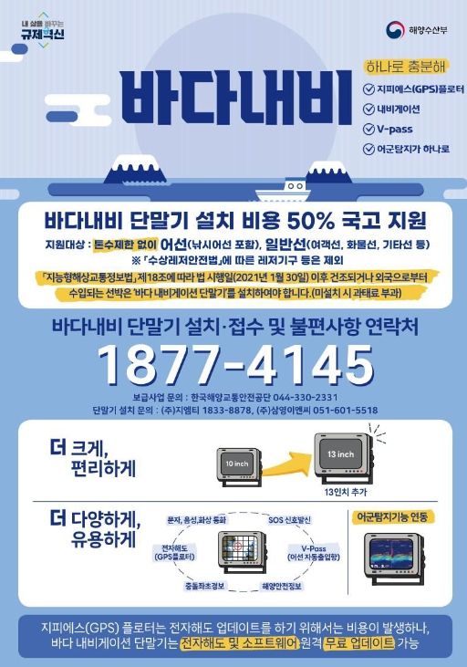 [제주교통복지신문 송한신 기자] 해양수산부는 안전하고 효율적인 항해를 위해 바다내비 단말기 구매 및 설치 비용의 50%를 지원하는 ‘바다내비 단말기 6차 보급사업’을 4월 9일부터 시행한다.