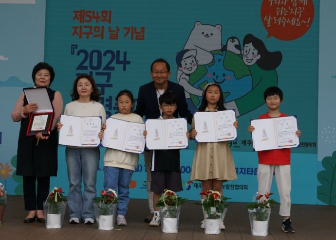 이날 행사에서는 탄소중립 실천에 기여한 유공자 표창, 지구사랑 포스터 공모전 우수작품 시상, 지구 살리기 실천 다짐, 2025 APEC 제주개최 유치 기원 퍼포먼스 등 다양한 환경 프로그램이 운영됐다.