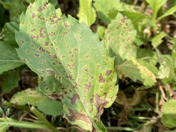 점무늬병은 파종 초기인 4월부터 발생하고 잎에 작은 갈색의 부정형 반점이 생긴다. 시들음병은 6월부터 발생해 지제부*가 점점 시들어가는 특성을 보인다.