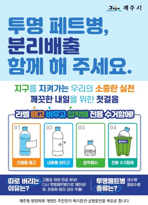 [제주교통복지신문 김현석 기자] 제주시는 5월 2일부터 6월 21일까지 ‘투명페트병 별도배출제’ 집중 홍보 기간을 운영한다.