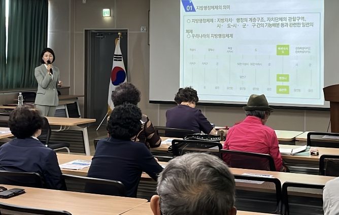 [제주교통복지신문 김현석 기자] 서귀포시는 9일, 성산읍노인복지회관에서 성산노인대학 수강생 50여 명을 대상으로 오영한 서귀포시 자치행정국장이 제주형 행정체제 도입에 대한 이해를 주제로 교육을 진행했다고 밝혔다.
