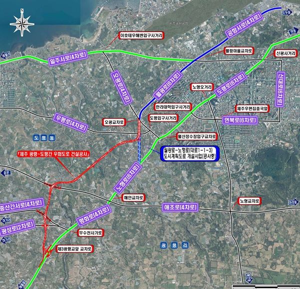현재 해당 구간은 제주공항에서 오광교차로까지 개설돼 차량이 운행되고 있으나 출퇴근 차량 집중시간에는 월산정수장입구 교차로를 중심으로 교통혼잡이 빚어지고 있다.