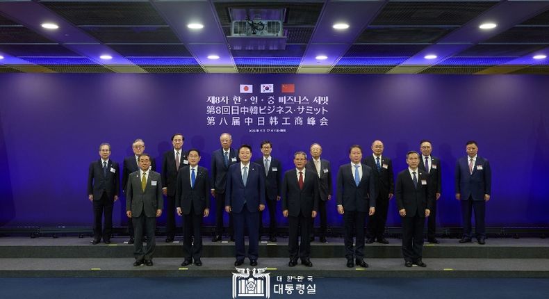 '한일중 비즈니스 서밋'은 ’09년에 시작돼 이번이 제8회로, ’19년 12월 제7차 행사가 중국 청두(成都)에서 개최된 이후 4년 5개월 만에 열리는 것이다. 이번 서밋에서는 한일중 정부와 경제계의 주요 인사들이 참석해 3국 간 경제 협력과 우의 증진을 논의했다.
