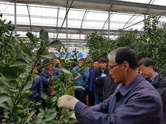 이날 교육은 서귀포농업기술센터 현동희 과장이 참가해 정지전정 기술 시연 및 실습 순으로 진행됐다.