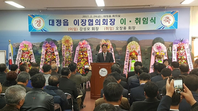 대정읍 이장협의회는 24일, 대정읍 회의실에서 허창옥 제주도의회 의원과 이윤명 대정읍장, 마을 이장 및 지역기관 단체장, 주민 등 100여명이 참석한 가운데 대정읍 이장협의회장 이·취임식을 거행했다.