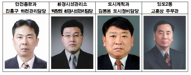이번에 선발된 공무원은 총 4명으로 안전총괄과 진홍구 하천관리담당(시설6급), 환경시설관리소 박창현 환경시설관리담당(행정6급), 도시계획과 김봉용 도시정비담당(시설6급), 일도2동 고훈상 주무관(운전7급) 등이다.