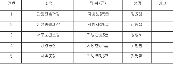 한편 같은 날 서귀포시 역시 5명의 사무관 승진 인용을 발표했다. 그 명단은 다음과 같다.