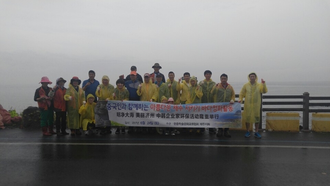 장마비가 내리는 굳은 날씨 속에 모인 중국인을 포함한 협회 관계자들은 애월읍 고내로 13길 입구를 시작으로 해변가를 따라 정화활동을 펼치며 다가오는 여름 성수기를 맞아 관광객 맞이에 한창인 도민들을 격려했다.
