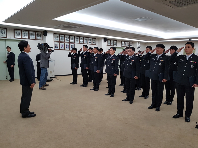 이들은 지난 7월부터 10월까지 광주소방학교에서 12주간 소방사반 기본교육을 수료한 뒤 화재진화사 전문 자격증 등을 취득했으며 앞으로 각종 재난현장에서 도민의 안전을 책임지게 된다.