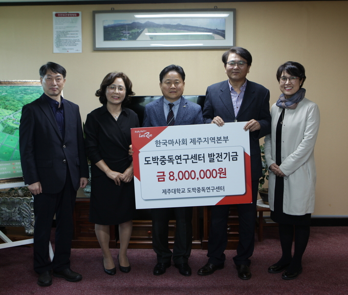 이날 전달식은 한국마사회 제주지역본부에서 이뤄졌으며, 한국마사회 정형석 제주지역본부장과 제주대 김성봉 도박중독연구센터장, 유캔센터(UCan Center) 우정애 제주상담소장이 함께 참석했다.