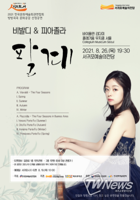 [제주교통복지신문 김지홍 기자] 서귀포시 서귀포예술의전당은 비발디 & 피아졸라 '팔계'기획공연을 이달 26일 저녁 7시30분에 개최한다고 밝혔다.